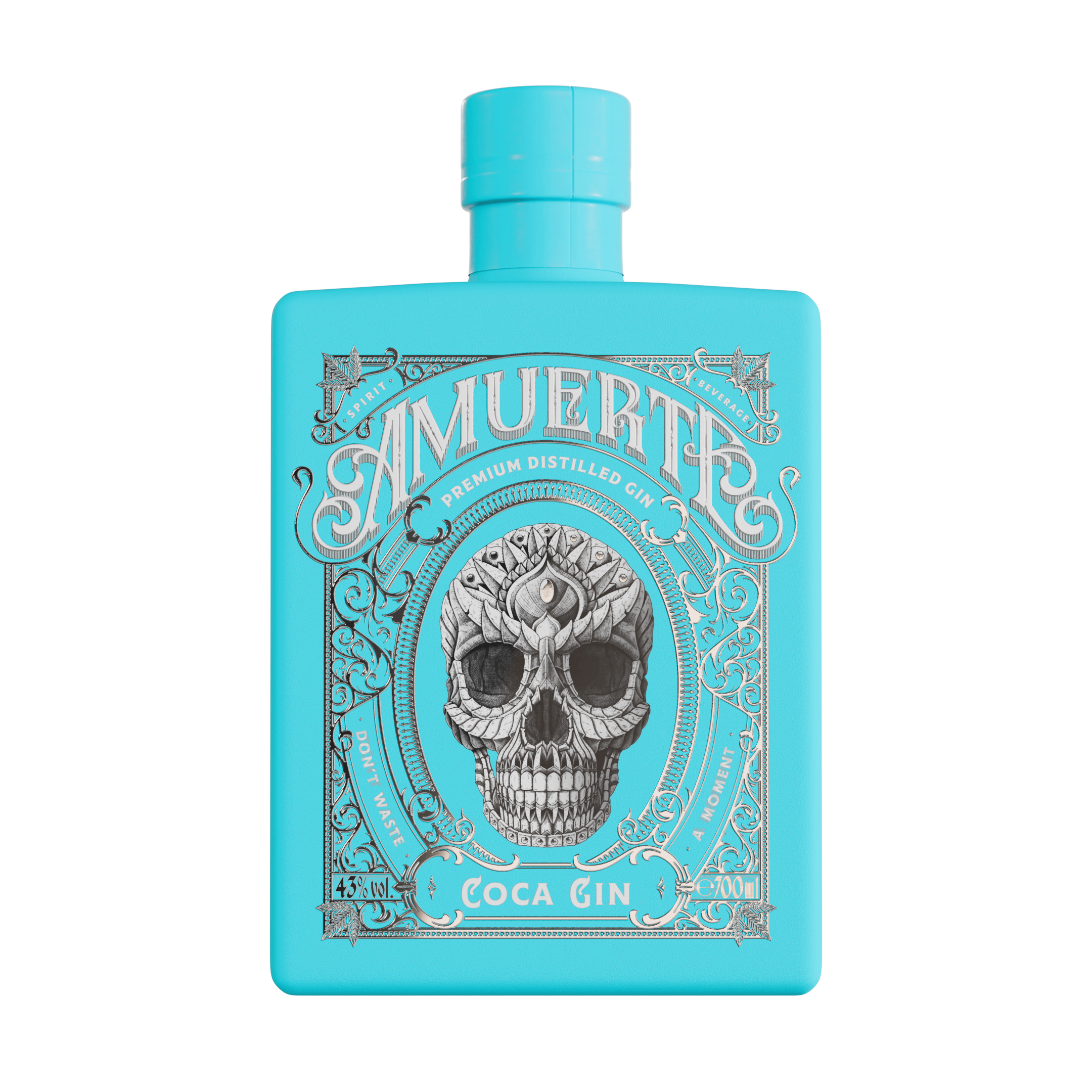 Uno spirito così può essere racchiuso solo in una bottiglia magistrale: disegnata alla perfezione, con un delicato colore azzurro e dettagli in platino.